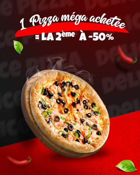Tomate, mozzarella, jambon, merguez, viande hachée, chèvre.